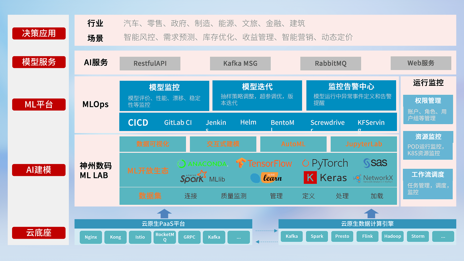 数据+模型双引擎驱动,,面向智能服务场景,,,快速灵活利用AI技术,,,支持业务决策,,,,助力企业智能化转型破局。。。